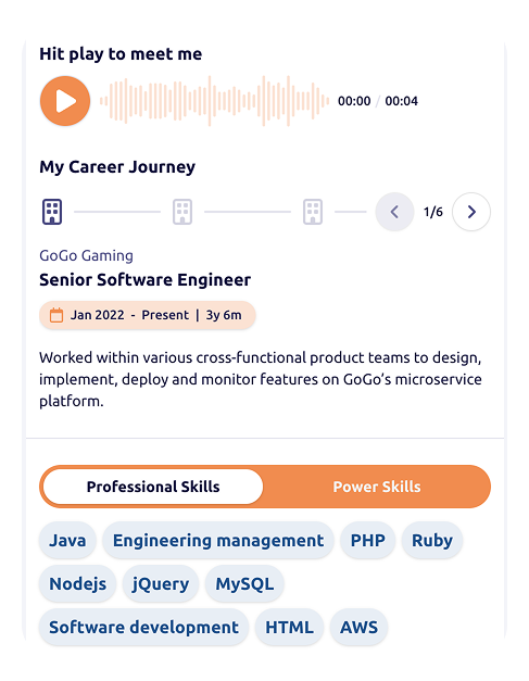 Once your Storyboard is up, Kai (your AI career coach) steps in. Kai provides instant feedback to polish your profile, suggesting improvements to wording and videos, ensuring you put your best professional foot forward.